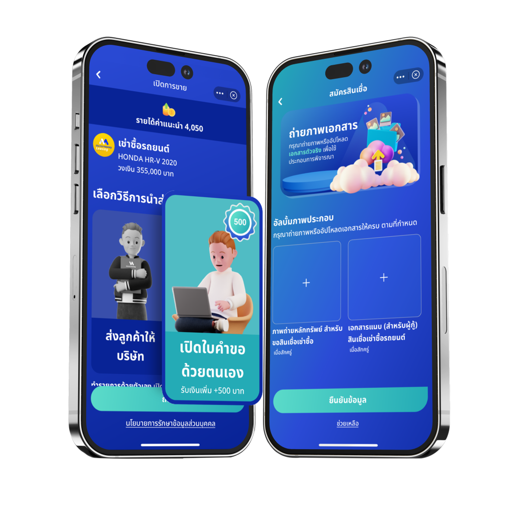 ด้วยเทคโนโลยีที่ล้ำสมัย คุณสามารถส่งเคสสินเชื่อรถยนต์ ตรวจสอบสถานะ และจัดการทุกอย่างได้ทุกเมื่อ ไม่ว่าจะอยู่ที่ไหน เวลาใดก็ตาม